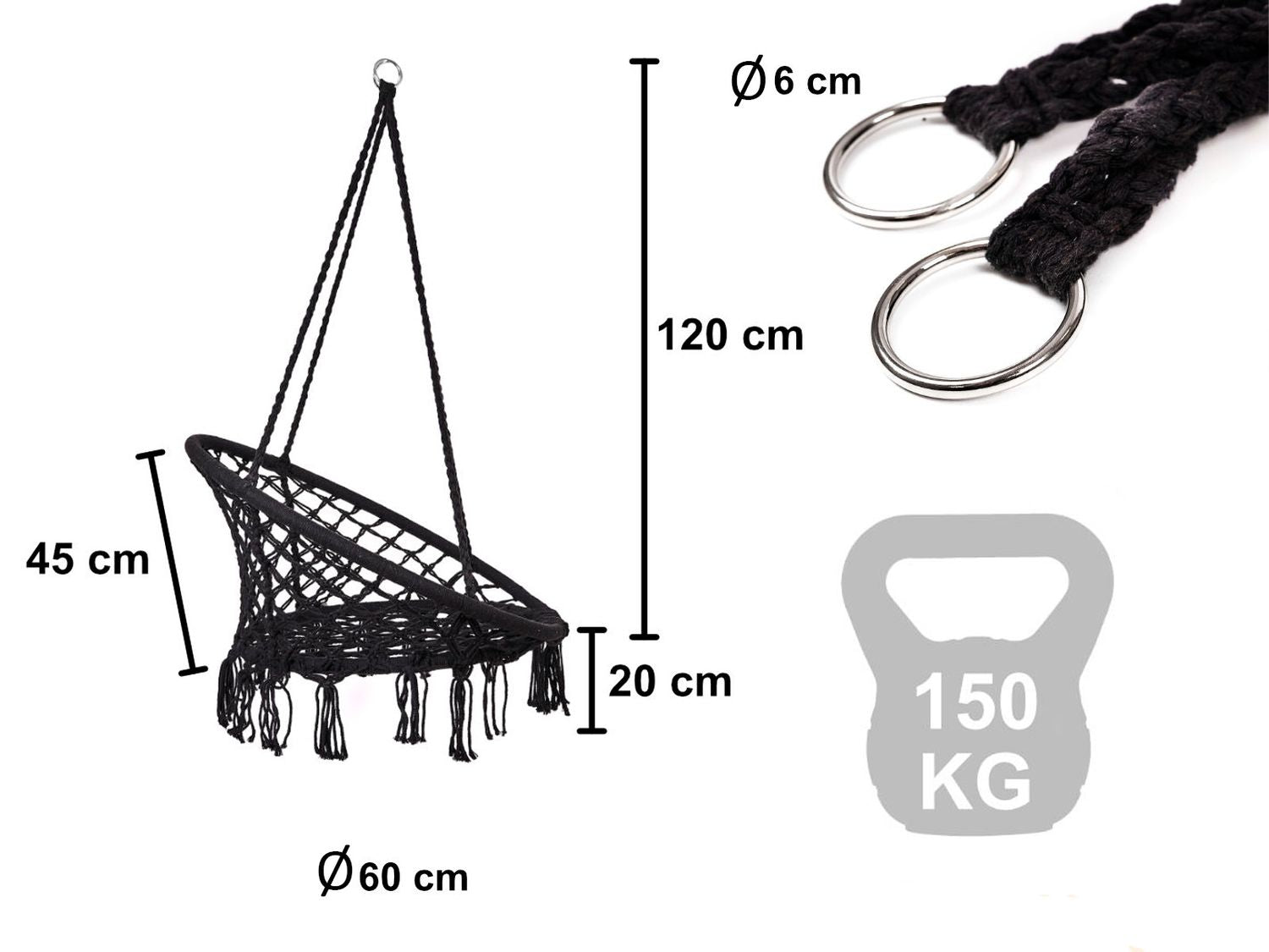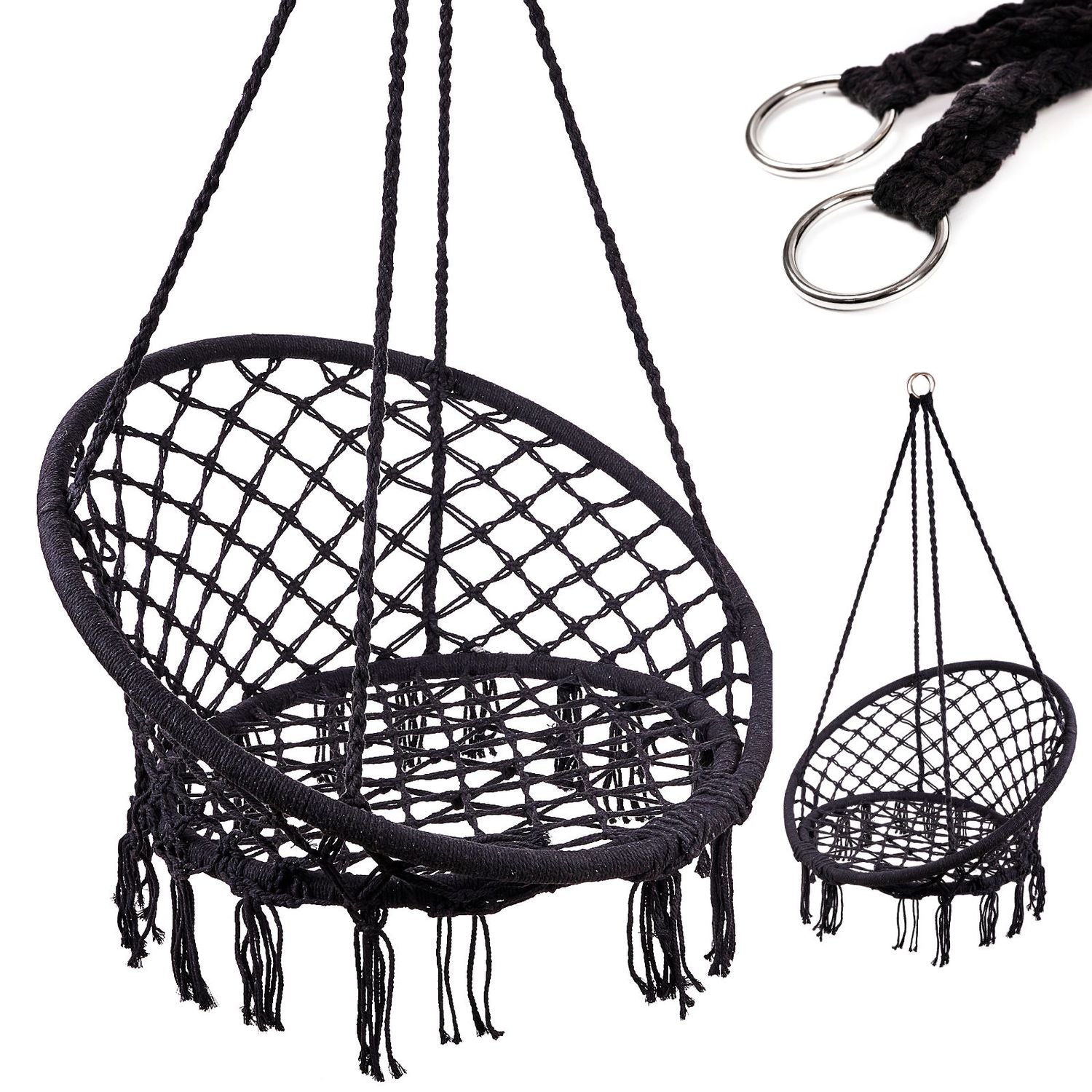 Huśtawka fotel bocianie gniazdo z oparciem czarna 80cm 150kg