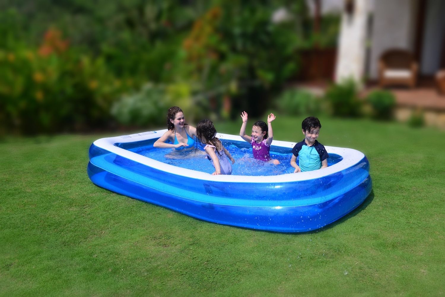 Nadmuchiwany basen ogrodowy dla dzieci o wymiarach 305 x 183 x 50 cm to idealny przedmiot by korzystać z letniej pogody na świeżym powietrzu. Posiada kształt prostokąta i jest to konstrukcja dwukomorowa nie posiadająca wystających twardych krawędzi więc jest bardzo bezpieczna nawet dla mniejszych dzieci. Nie potrzebujesz żadnych narzędzi do złożenia, wystarczy prostu go napompować.